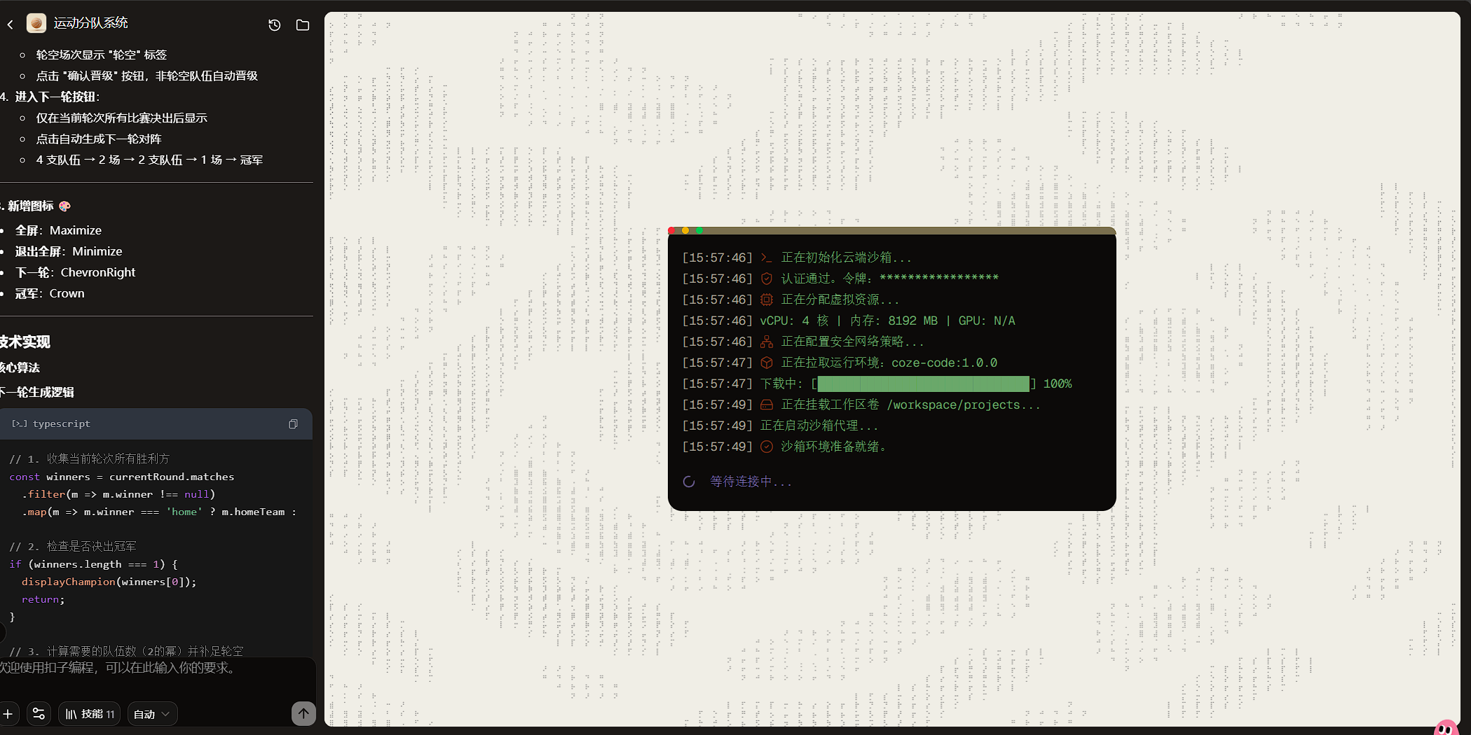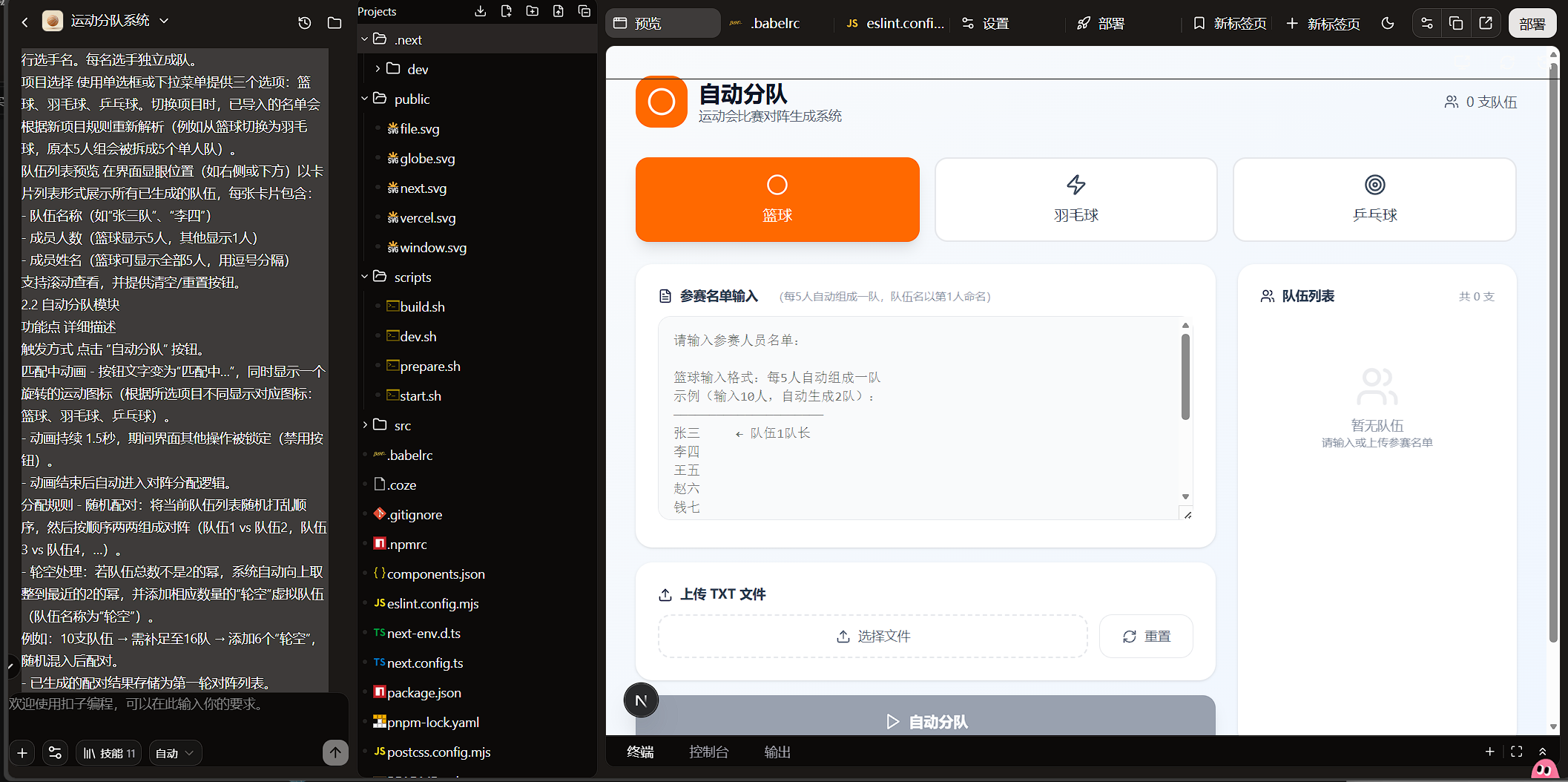 综上所述,由于运动项目的特性,各类别规则、赛制均不相同。我的做法是将沟通结果及时记录、最终形成了一份详细的需求规格说明书,这份文档是整个开发的基础,也是和Coze对话的“剧本”。