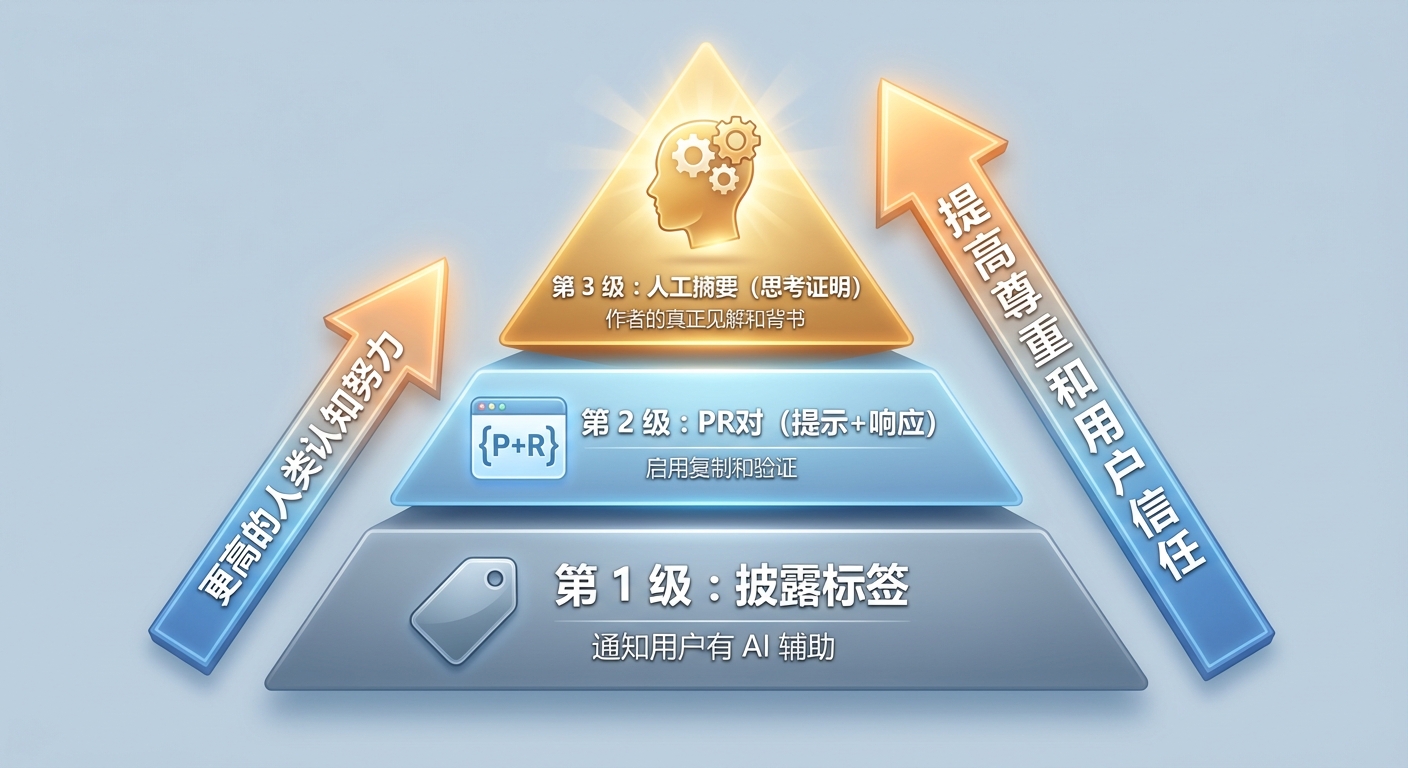 - 人工摘要/重写:这是最高等级的礼仪。作者必须亲自撰写核心观点或摘要,证明我在 AI 的基础上投入了“思考算力”。