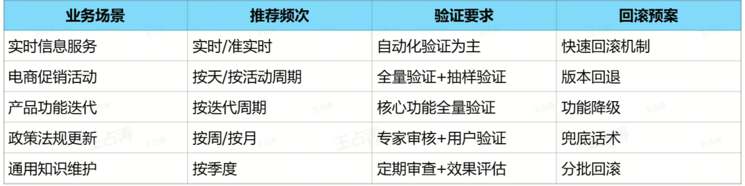 - 边缘业务知识:如企业文化、品牌故事,可适当降低更新频次
