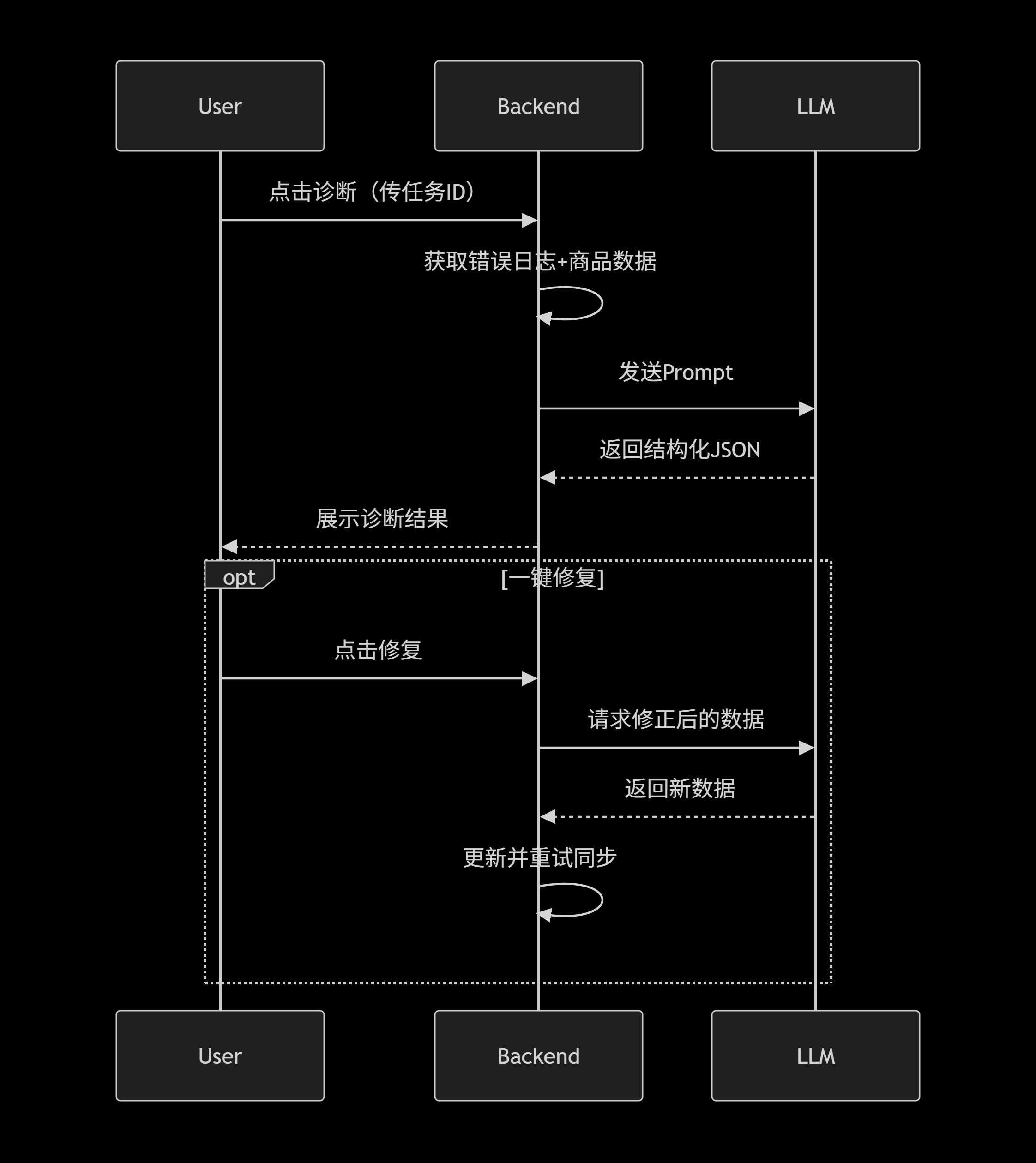 - LLM(大语言模型):把错误日志和商品数据喂给AI,让它生成结构化输出。成本低、灵活、维护简单。
