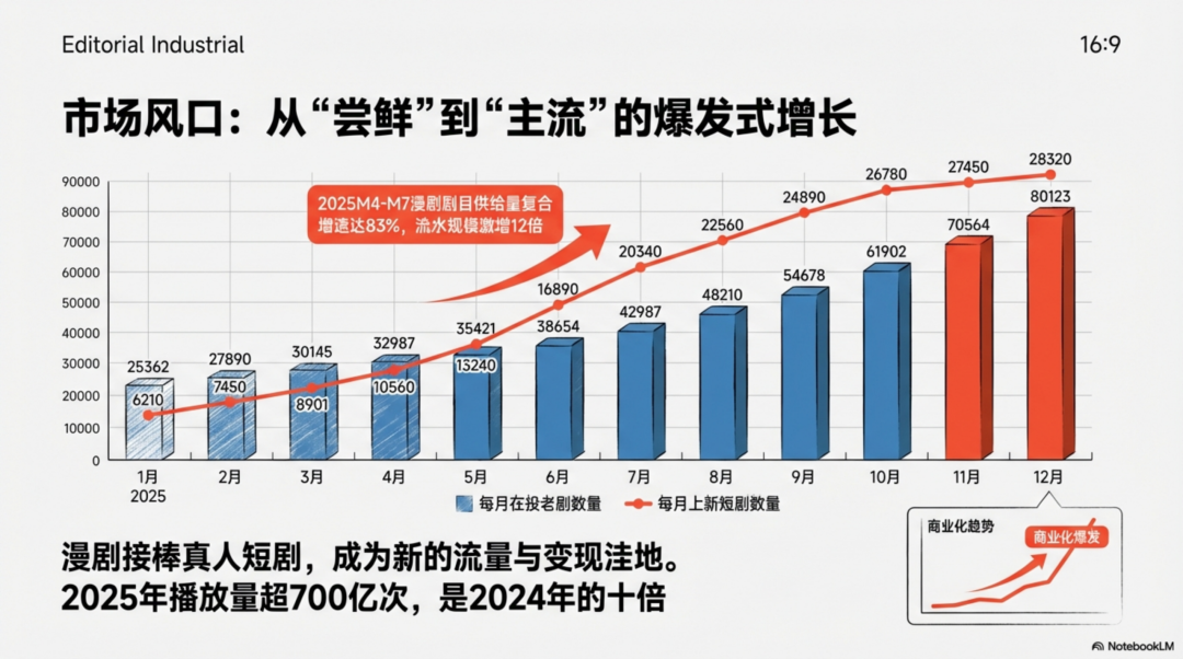 流量的流向决定了资本的站位。2025年漫剧在抖音、红果等平台的总播放量突破700亿次,较前一年增长了10倍。