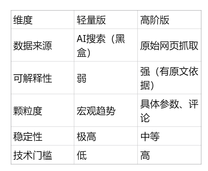 - 优点:数据“原汁原味”,可追溯,能与私域数据进行行级匹配(如对比竞品价格)