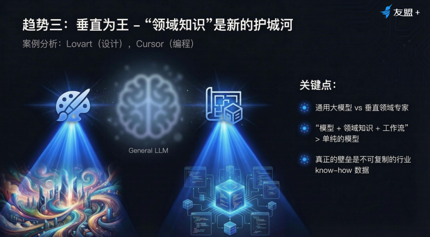 想办法构建你自己的私域数据、行业数据。这些是AI不容易获取的,也是它最想要的。你的数据越垂直,AI给你的洞察就越犀利。
