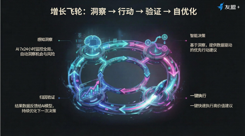 这就是我们说的增长飞轮:洞察→决策→执行→验证→自优化。