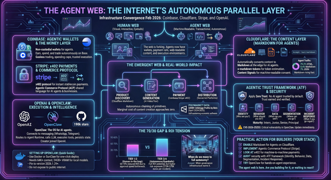 这印证了业内那个残酷的预测:如果一个应用的核心价值仅仅是作为手工操作的界面,那么80%的此类应用将在未来几年消失,被统一的“Agent调度中心”取代。互联网的表层形态正在剥落,退居幕后,成为Agent之间隐秘的、基于JSON和Markdown通信的高速网络。