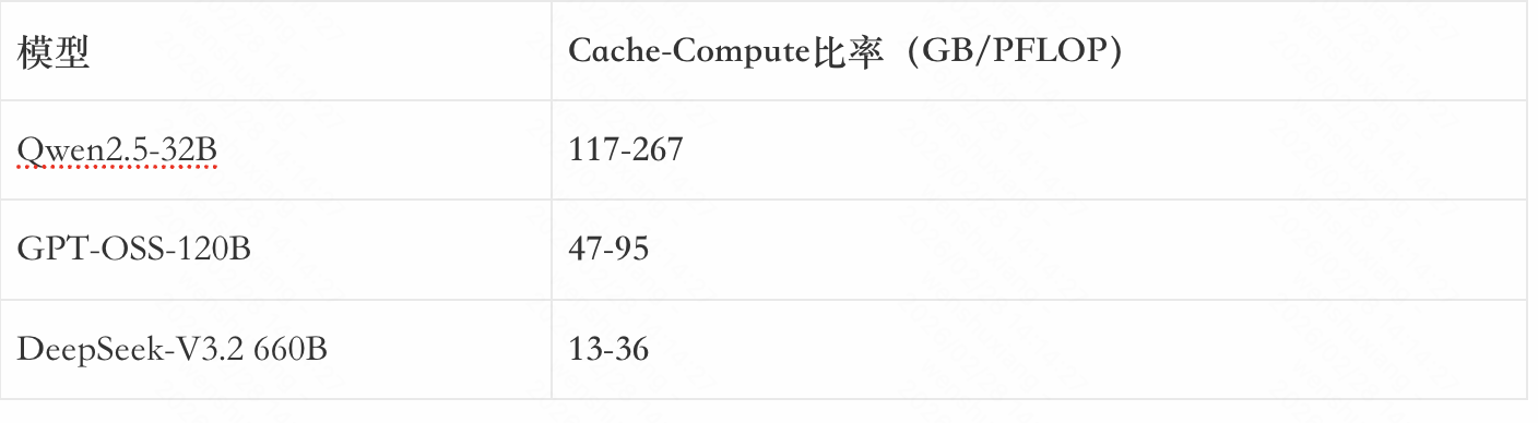 这说明什么?即使是优化最好的DeepSeek-V3.2(用了稀疏注意力),I/O需求也是计算需求的13-36倍。Qwen更夸张,高达267倍。