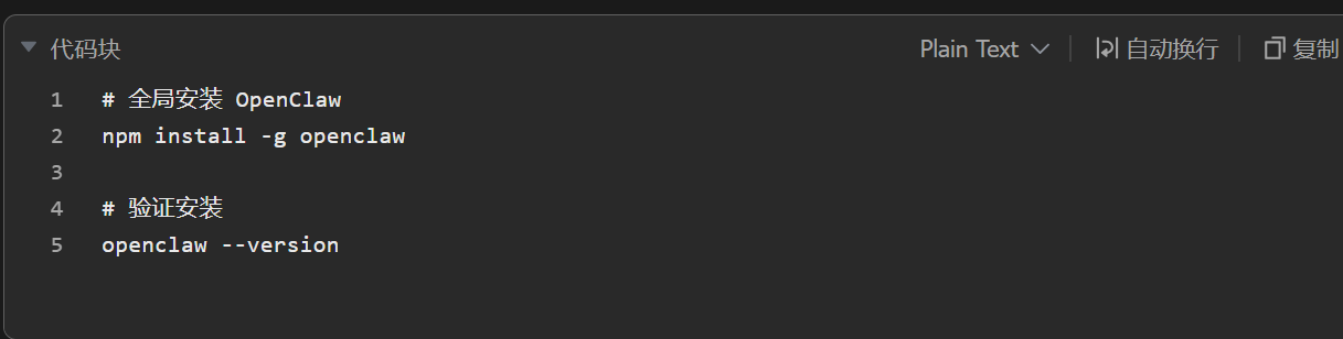 完成标准: 运行 openclaw –version 或 openclaw –help 能正常显示信息