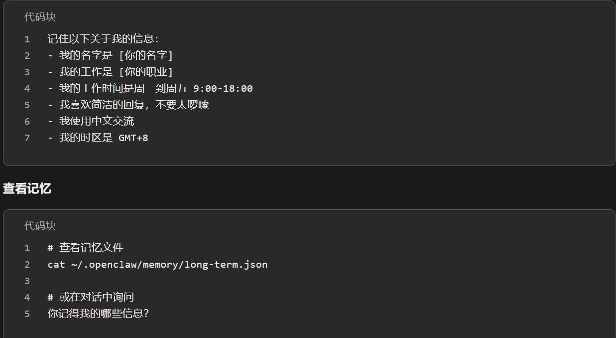 完成标准: OpenClaw 能在对话中体现出对你的了解