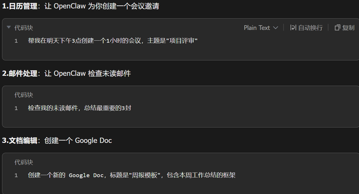 OpenClaw 可以管理你的 Gmail、Google Calendar、Google Docs 等。