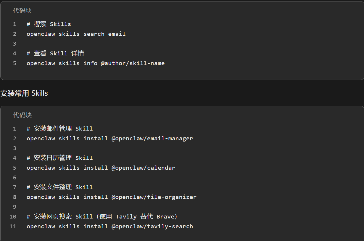 Skills 是 OpenClaw 的能力扩展,类似于“插件”或“应用”: