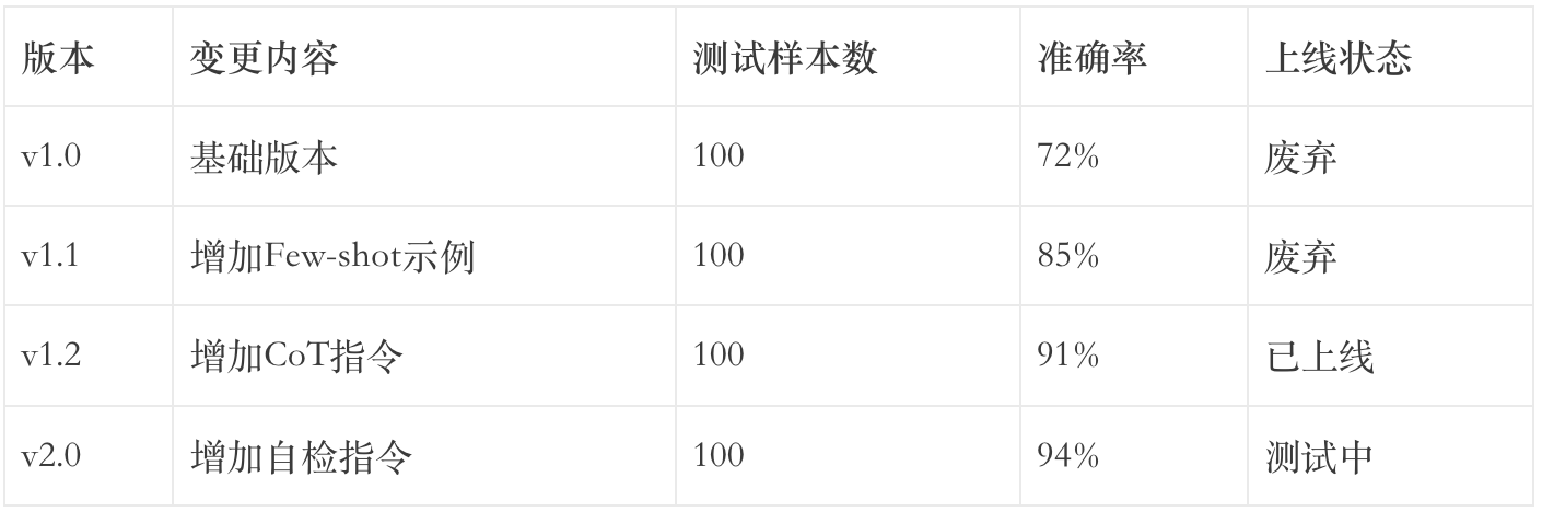 建立A/B测试框架,量化评估不同Prompt版本: