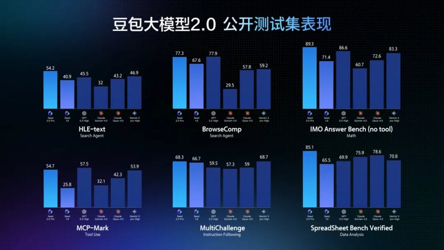 公开测试数据显示,豆包大模型2.0 Pro在SuperGPQA上分数超过GPT 5.2,并在 HealthBench上拿到第一名,这意味着科学领域实力与Gemini 3 Pro和GPT 5.2旗鼓相当;在国际数学奥赛(IMO)测评集上得分超越Gemini 3 pro,这意味着数学理解和推理能力更胜一筹……