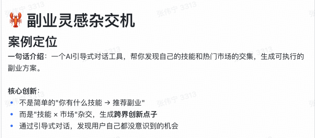 最近我发现了一个方法:让openclaw帮你的技能和热门市场”杂交”,生成跨界副业点子。