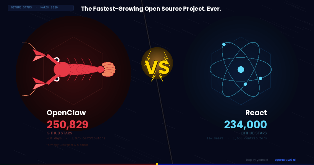 2026年开年AI圈最魔幻的一幕,莫过于一只叫OpenClaw的“小龙虾”横空出世。它在GitHub上一天斩获9000星标,两周破17万,上线两个月就成了全球增速最快的开源项目。
