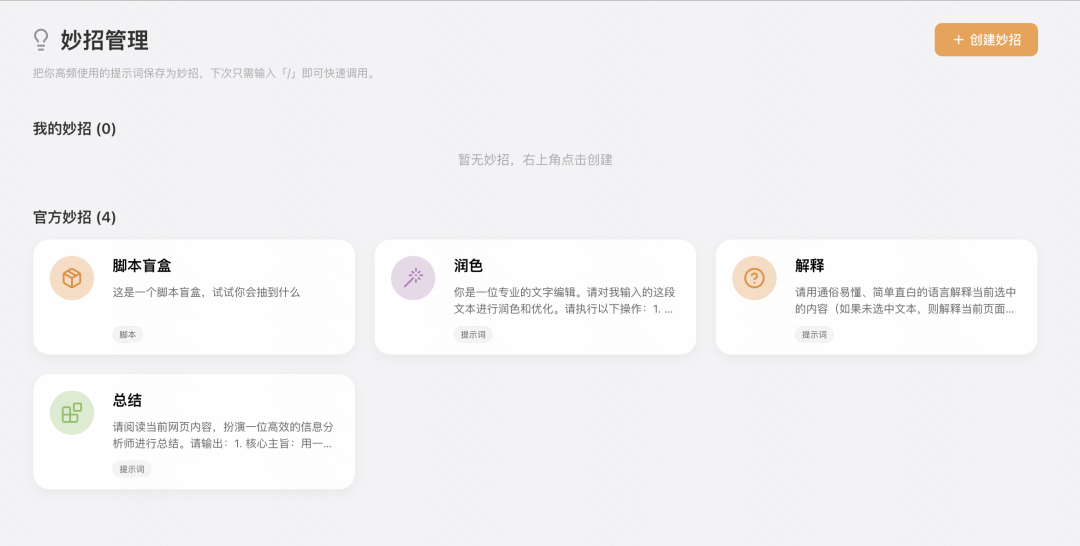 智能代理是一次性的任务执行,”妙招”则是把这种能力沉淀下来。