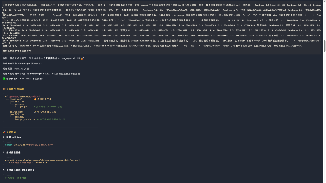Doubao-Seed-2.0-Code的编程能力也很强,我决定直接让龙虾帮我开发一个自拍Skills。