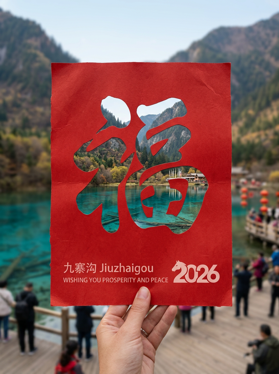 – 50mm真实摄影;浅景深但“福”字边缘与核心地标同时清晰。