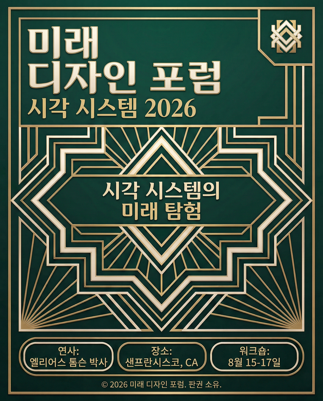 主标题“FUTURE DESIGN FORUM”,副标题“VISUAL SYSTEMS 2026”,说明行强调微文案清晰与层级优先。