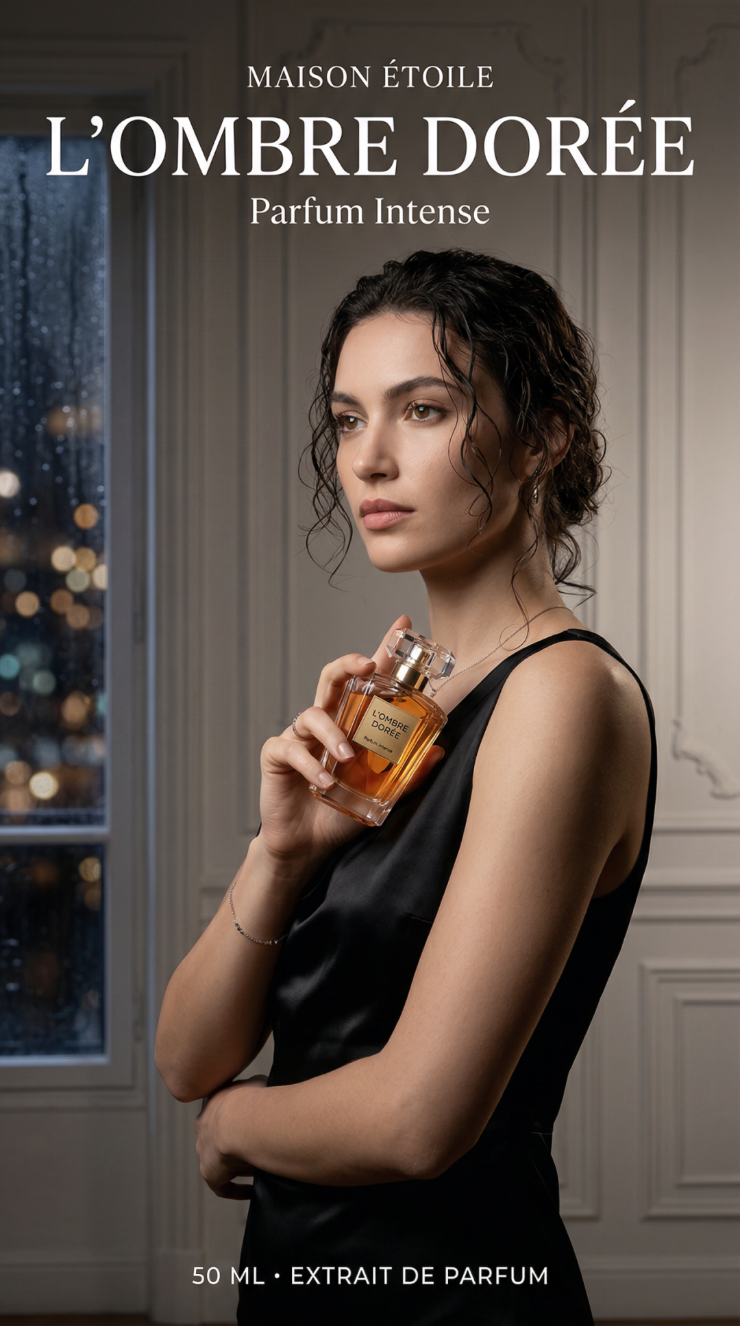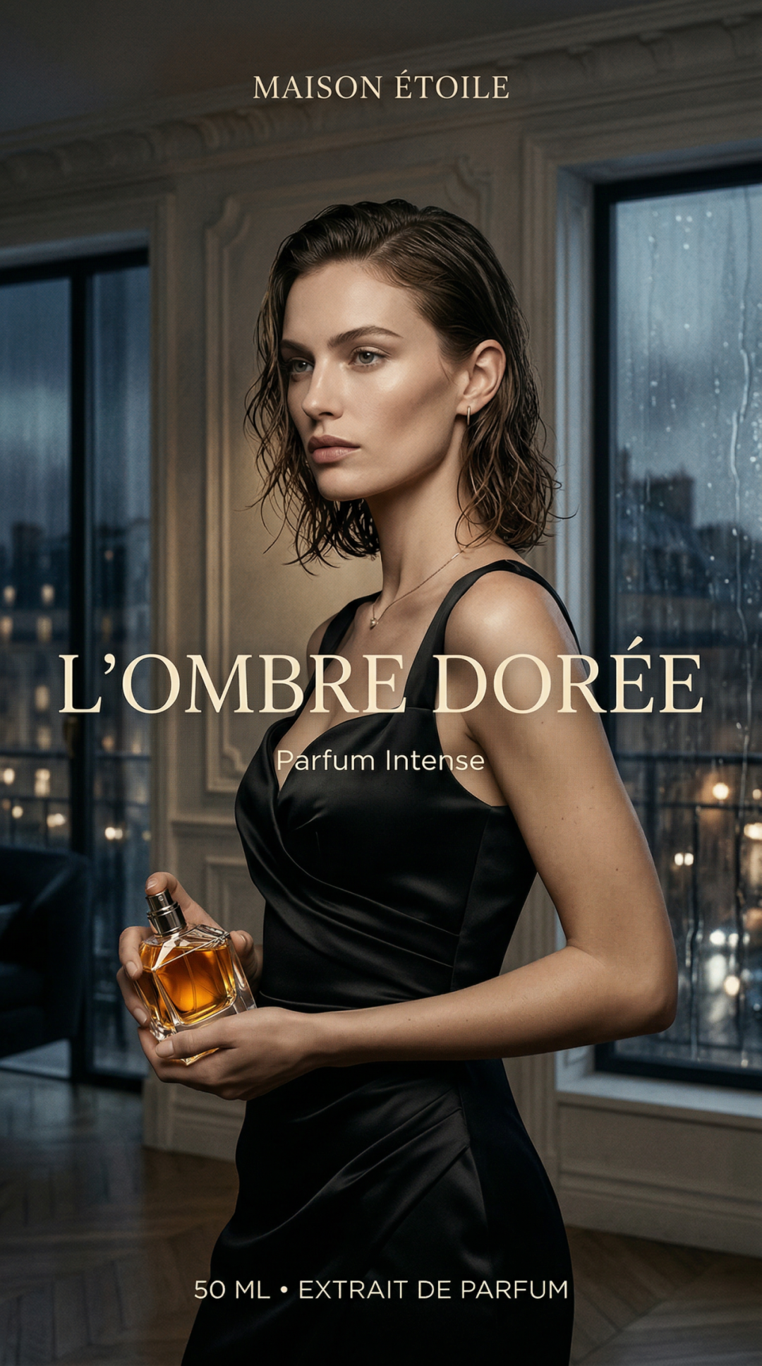 中部大标题(高奢衬线,字距拉开):L’OMBRE DORÉE