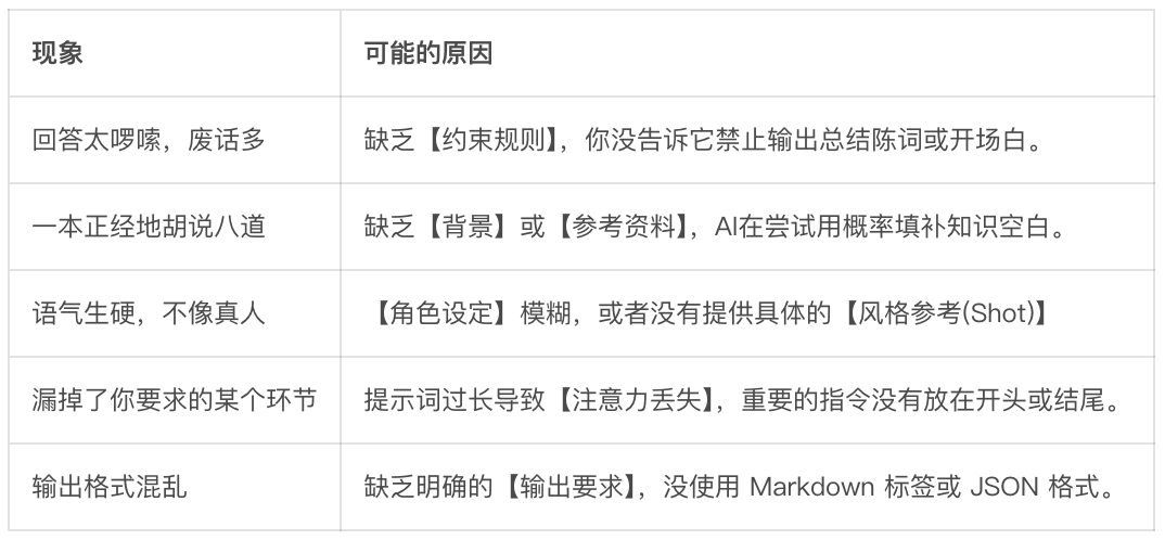 把最核心的规则(如:禁止输出任何废话)挪到提示词的最后一行,或者用加粗、!!惊叹号!!来提醒 AI 注意。