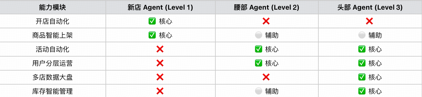 每一层Agent的能力设计,遵循“痛点对应、最小可用、可落地”原则,不做无用功能,确保商家能快速感知价值。