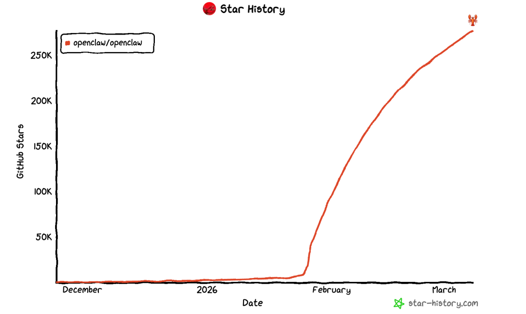 而在硬币的另一面,全球硬核极客和AI创业者见证了一场史诗级盛况:一个名为OpenClaw的开源项目,极短时间内狂揽超过25万颗Star,不仅把盘踞榜首多年的React拉下马,甚至超越了Linux,一跃成为GitHub历史上Star数最高的非聚合类软件项目。