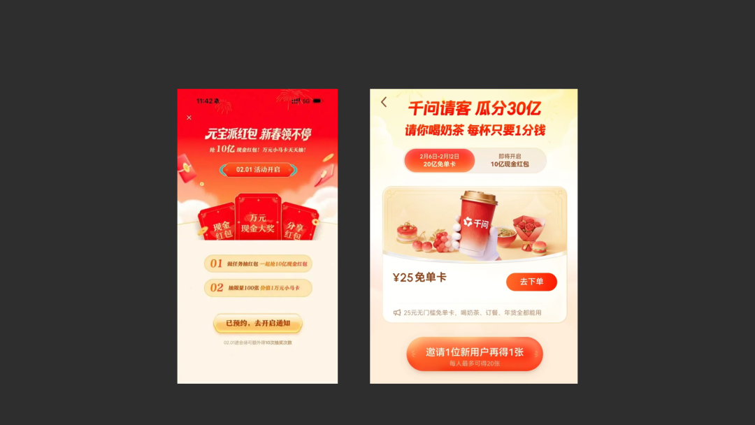 是千问多发了几张奶茶券吗?是元宝的红包吗?