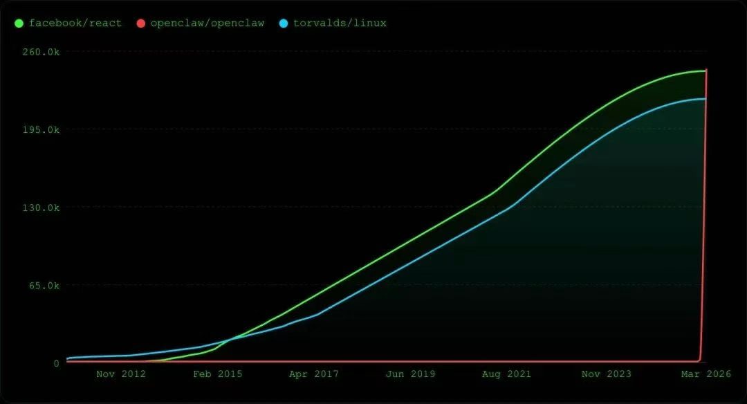 这里的“龙虾”,指的正是那个在短短两个月内,星标数突破24.8万、超越Linux成为GitHub历史第一的开源项目——OpenClaw。
