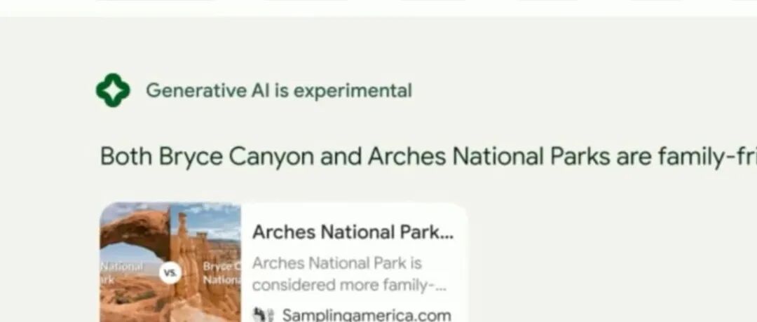 Google在推出搜索生成体验AI Overviews时,其UI设计中大量使用了动态变化的颜色和明显的“Generative AI is experimental”标签,从视觉上将其与传统的精确搜索结果区分开来。