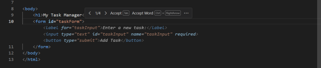GitHub Copilot的厉害之处不仅在于背后的Codex模型,更在于其的交互设计——幽灵文本(Ghost Text)。AI生成的代码以浅灰色的形式悬浮在编辑器中,它不会破坏现有代码。只有当用户明确按下Tab键(或者点击Accept)时,代码才会被真正写入。