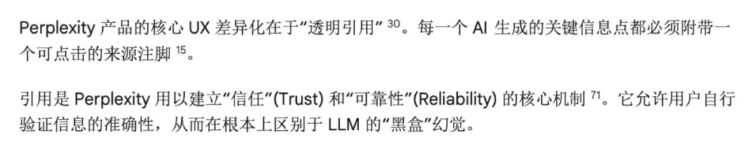 Perplexity的爆火证明了“带引用的AI”才是搜索的未来。它的每一个核心观点后都会附带一个小数字 [1] [2],点击即可展开看到引用的具体网页来源。如果用户怀疑AI胡说八道,点开来源一看便知。