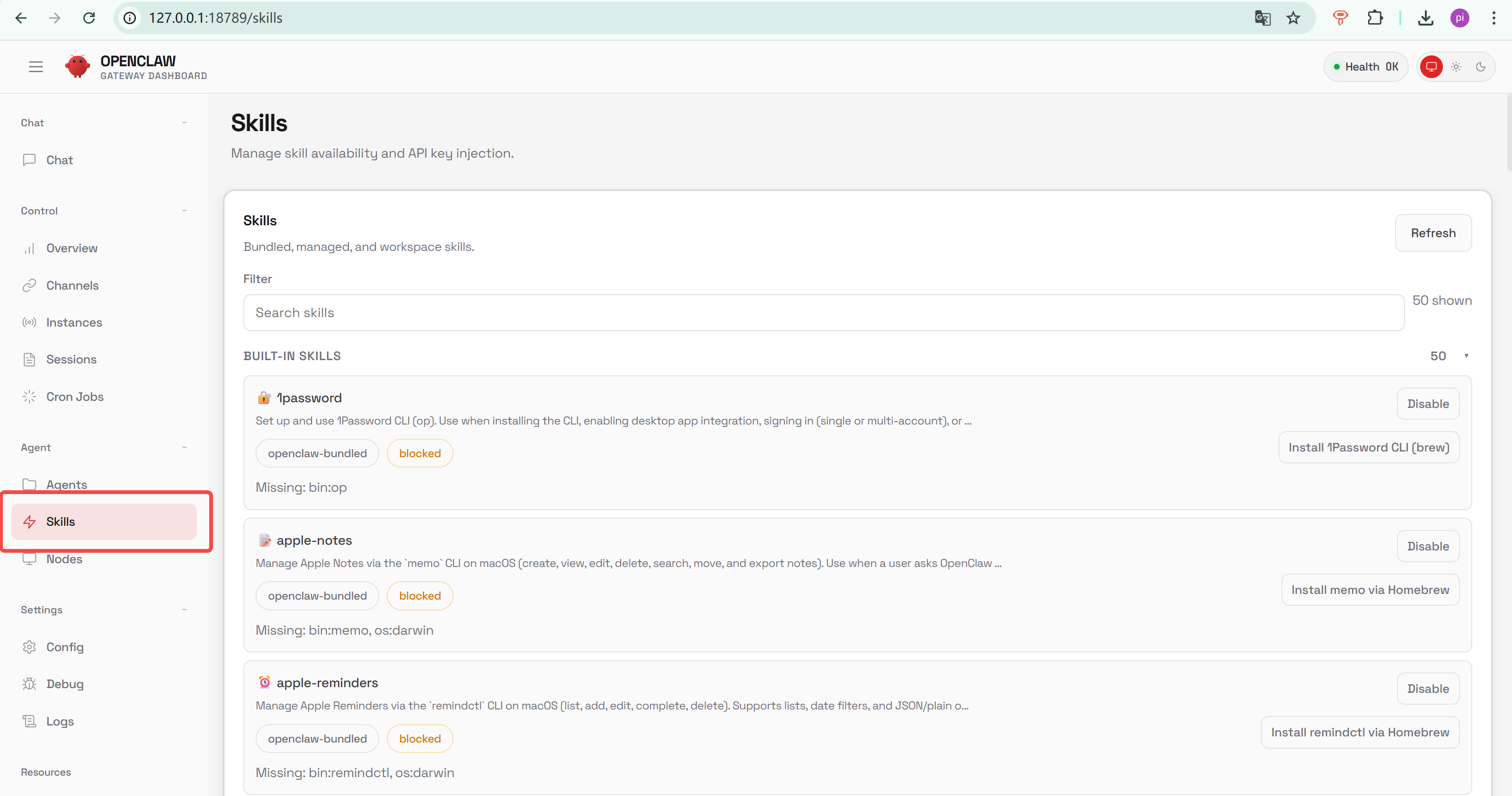 - 日常提醒: Weather 技能不需要配置 API 密钥,可以查天气并主动推送提醒,适合需要根据天气安排计划的用户。