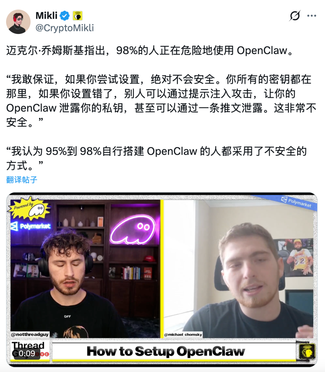 因为安全关乎我们每一个玩龙虾玩得很嗨的人。