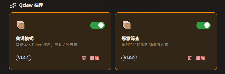 如前文所述,阻碍大众使用 OpenClaw 的最大痛点是“危险”。Qclaw 没有用玄学去解释大模型的可靠性,而是用粗暴但极其有效的“工程化手段”做了一道防弹衣。