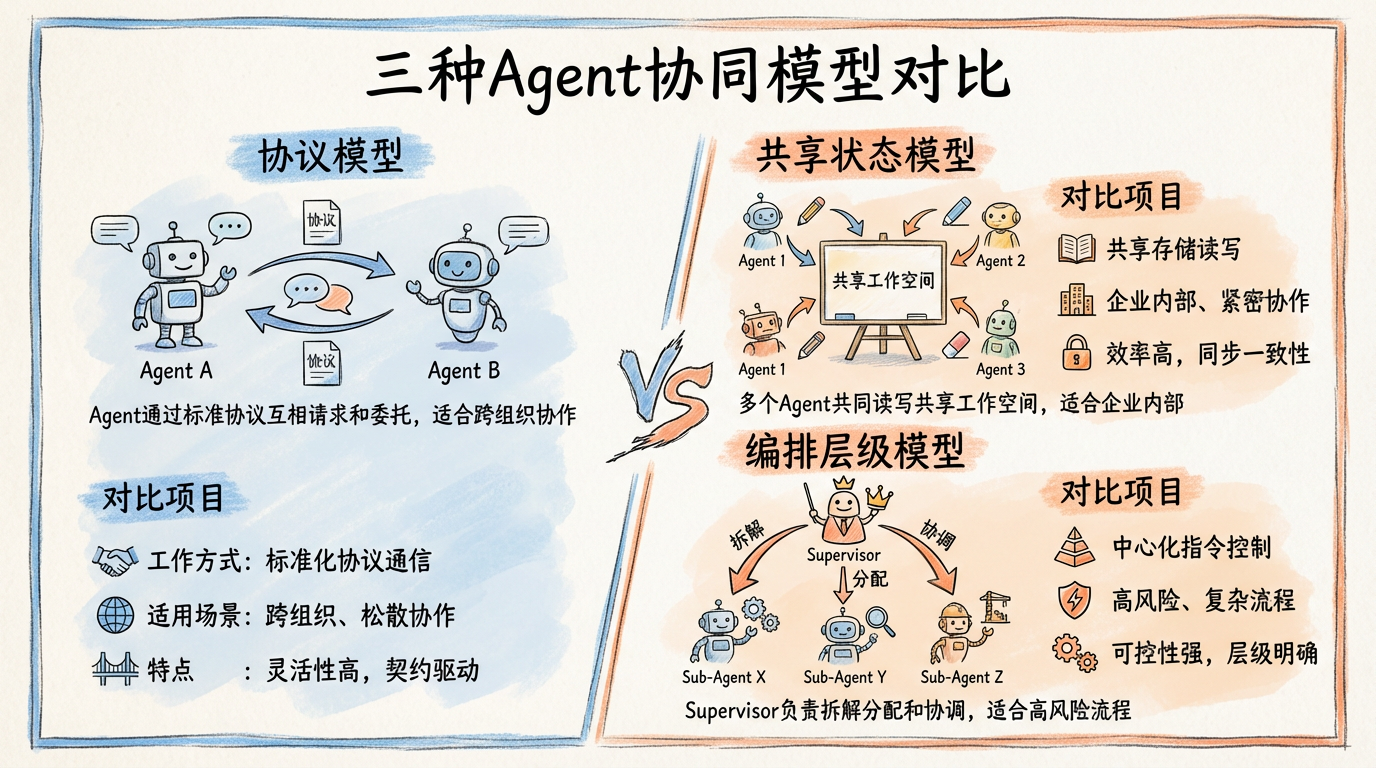 我认为未来Agent间沟通会分化成三种模型,并且会长期并存。