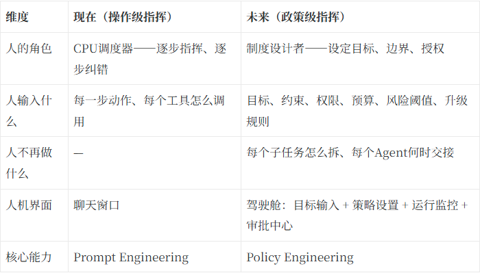 未来最重要的不是prompt engineering,而是policy engineering。谁先学会给Agent定规矩、分权限、做审计,谁就先拿到下一个时代的入场券。