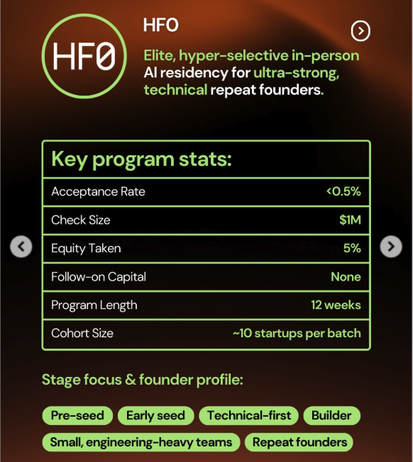 - 深度洞察:HF0 专注投资连续创业者和顶级全栈工程师。他们认为 AI 时代的竞争就是速度的竞争,因此他们通过物理隔离的方式,帮创始人砍掉一切噪音。