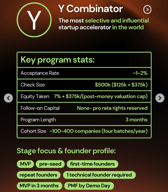 - 深度洞察:YC 现在非常看重增长速度。如果你的项目不是那种能快速规模化的软件模型,或者你更偏向底层技术研发,YC 的节奏可能会让你感到压力。它的 Demo Day 依然是全球资本关注的焦点,能瞬间帮你在几周内募集到数百万美金。