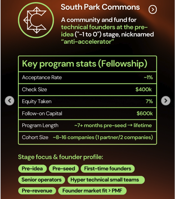 - 投资模式:它的“社区基金”提供 $400,000 美金换取 7% 的股份。最诱人的是,它承诺在你的首轮外部融资中自动追加 $600,000 美金的投资,帮你稳住开局。