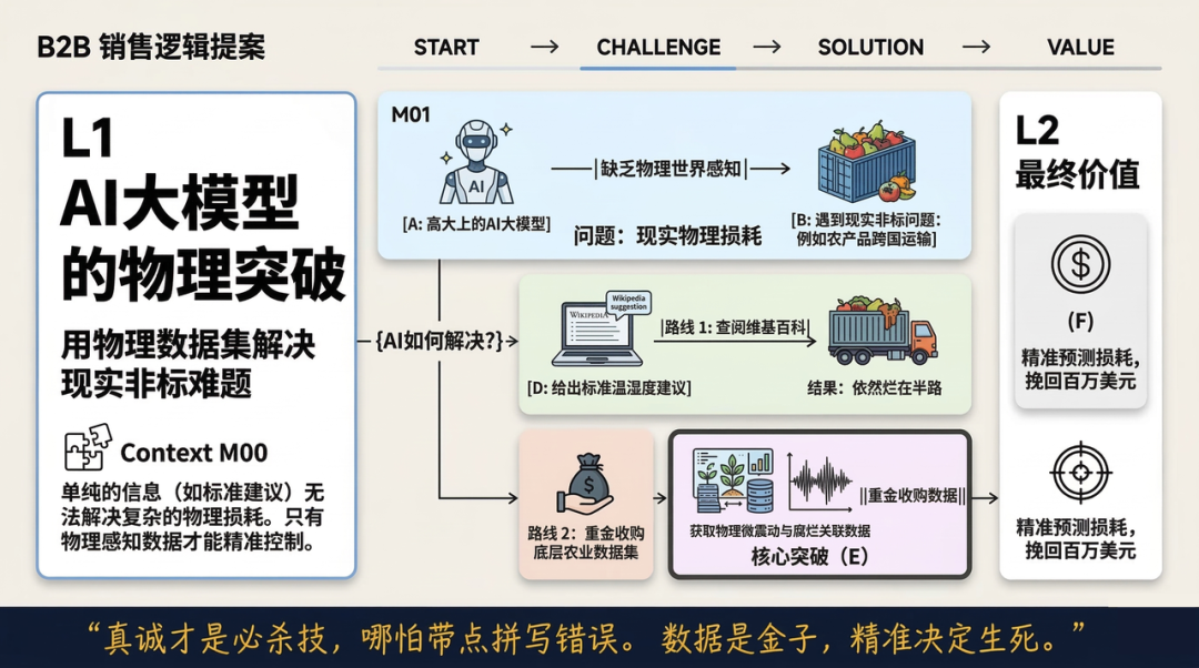 现在那些高大上的AI,一秒钟能给你写出八百字赞美西红柿的十四行诗,但你把它塞进跨国货车里试试?卡车在省道减速带上多颠了三次,这车西红柿三天后到港口会烂掉百分之几?AI知道个屁!