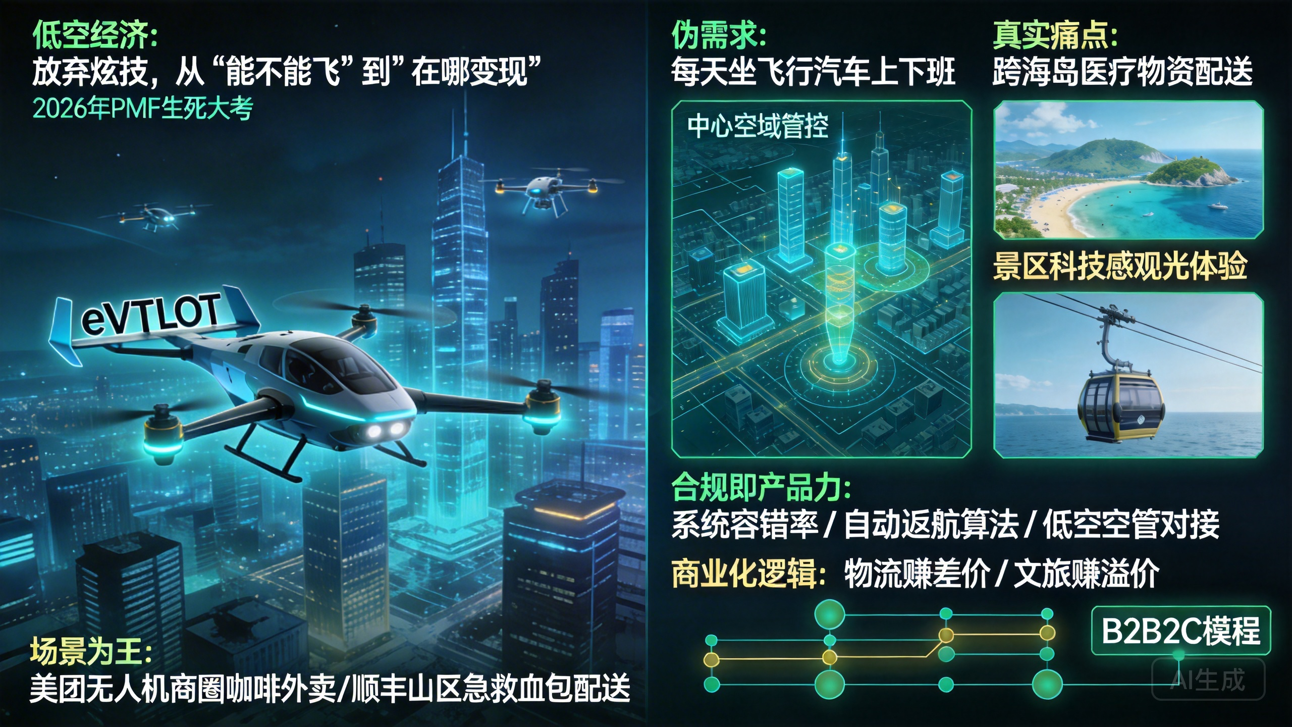 低空经济(eVTOL、无人机)在经历了几年的政策狂欢后,2026年正式进入PMF(产品市场契合度)生死大考。