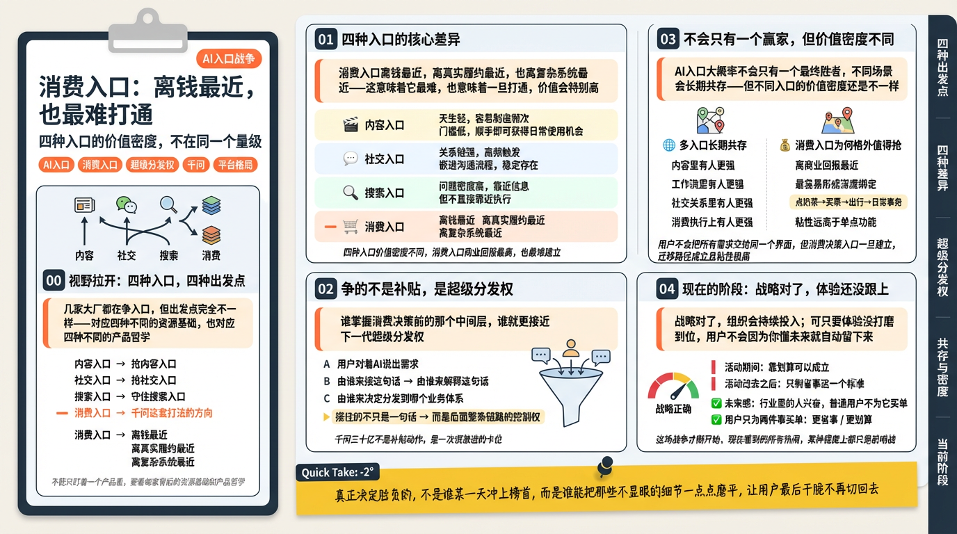所以我现在越来越觉得,入口战争比的不是谁喊得响,也不是谁砸得多,而是谁先让用户忘记自己在用AI