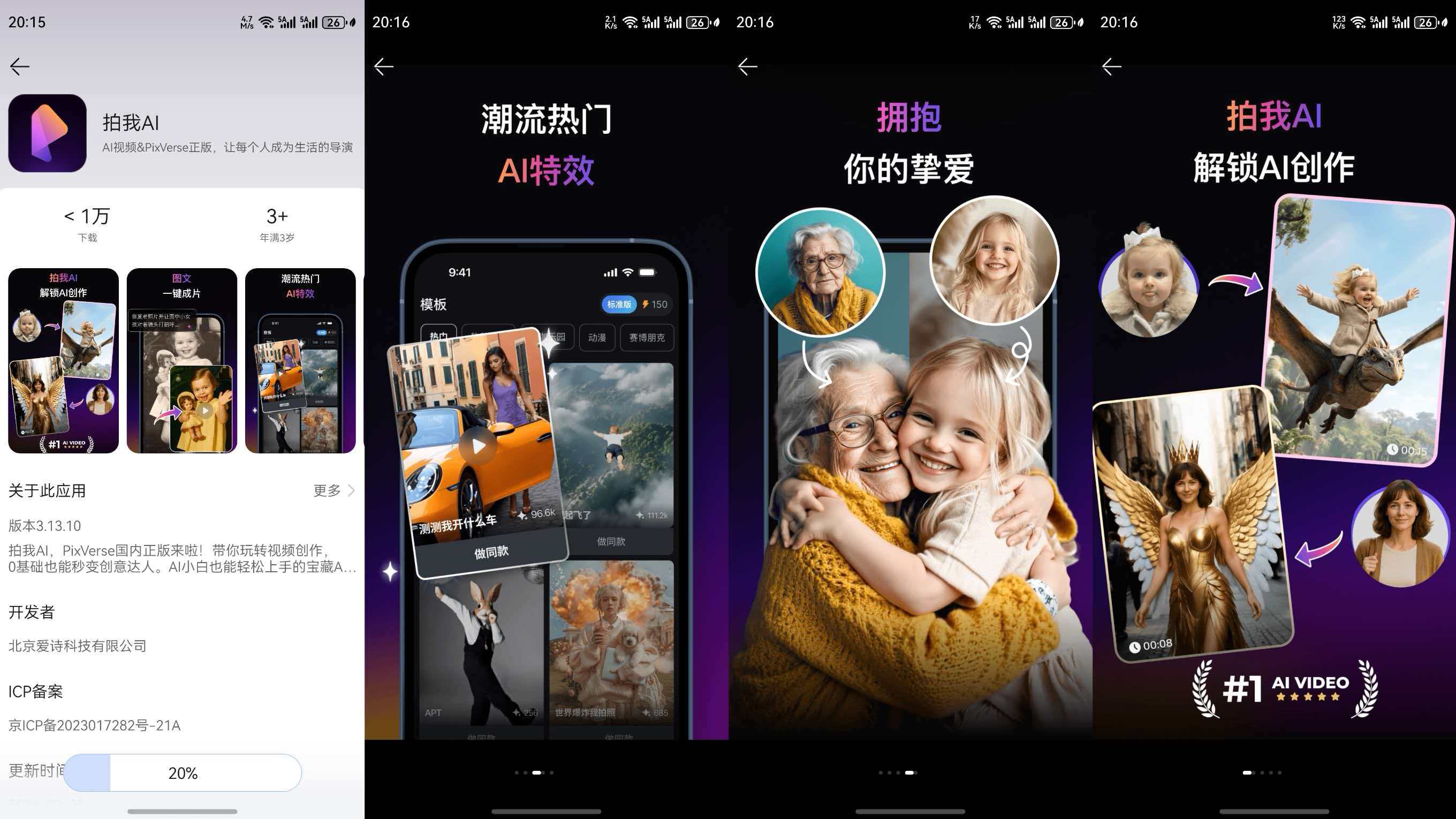 Sora、Runway等海外工具对于中国用户需要翻墙才能使用。VPN本身就是一个巨大的摩擦成本。而PixVerse从一开始就采取了“全球化+本地化”双轨策略——据爱诗科技联合创始人谢旭璋公开表示,PixVerse已“在全世界80%国家验证了用户需求”,国内版“拍我AI”无需翻墙、原生支持中文。