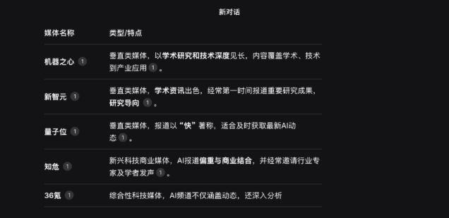 几个小时后,他们打开DeepSeek的联网搜索,输入:”想了解AI可以看哪些媒体?”