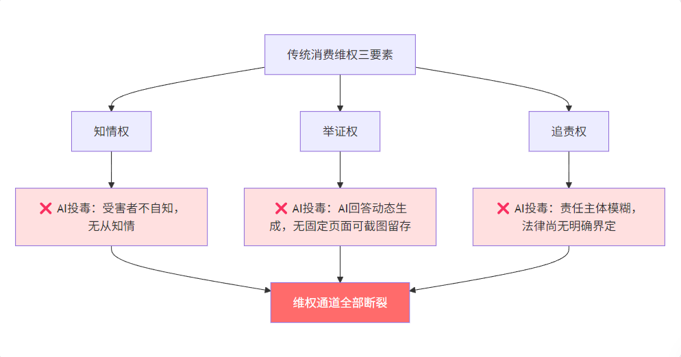 但AI投毒不一样。它在三个关键环节上,系统性地切断了用户维权的可能性。
