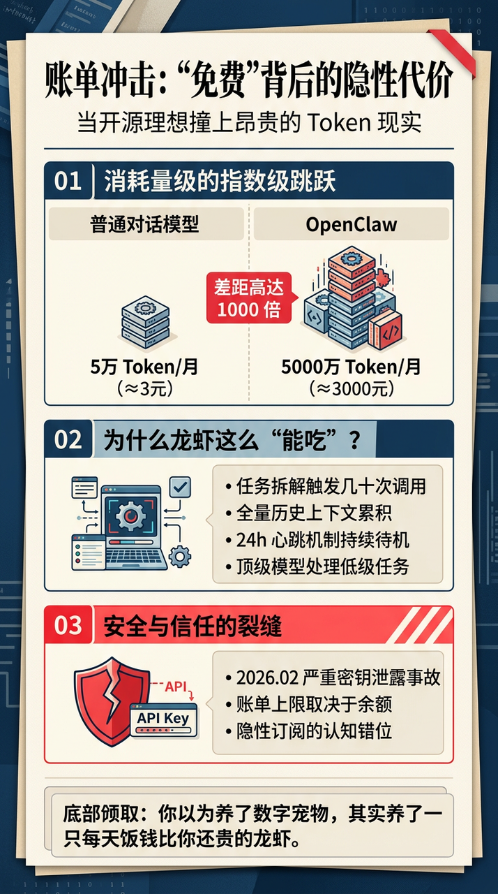 OpenClaw有一个经常被忽略的底层事实:它本身是开源免费的,但驱动它运转的大模型API不是免费的,而且比大多数人预想的要贵得多得多。