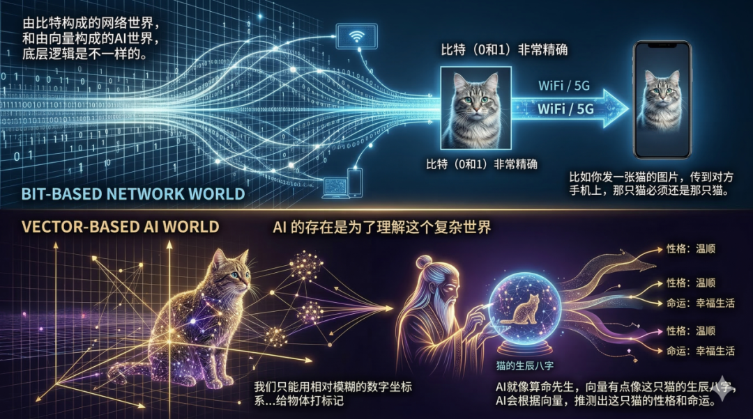所以,由比特构成的网络世界,和由向量构成的AI世界,底层逻辑是不一样的。