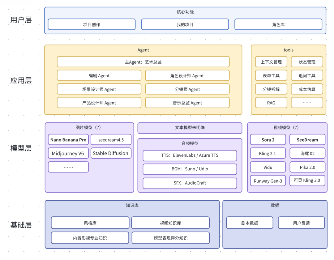 风格库、视频知识库、影视专业知识、模型表现评分知识,这些底层资产才是长期竞争力的来源。这一层回答的核心问题是:模型和流程的优势,会不会随着数据积累越用越强?