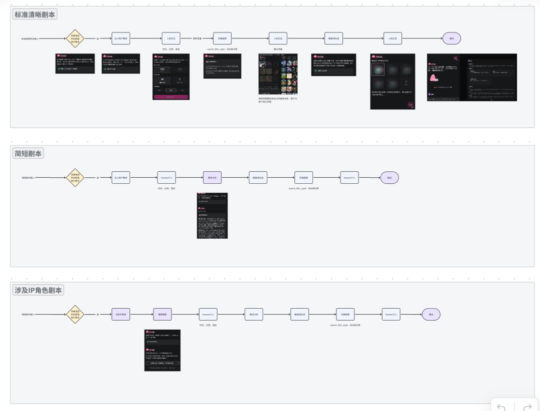 第一步,需求解析和初判。拿到用户输入后,它先判断这个需求里有没有包含分镜、剧情、角色设定这三个关键要素。如果有,激活故事短片创作主流程。如果缺了某个要素,它不会自己脑补,而是调用追问工具向用户确认。