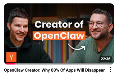 巧的是,这几天大热的 OpenClaw 创始人也在 YC 的一期播客里表示:80%的app会消失。